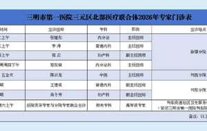 医联体专家门诊 ▏三明市第一医院三元区