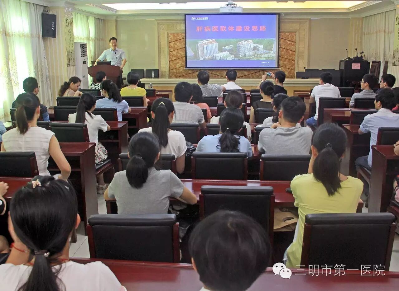 刘景丰一行围绕医联体协作相关事宜与我院进行洽谈,双方将在临床诊疗、远程会诊等方面加强互动,共同建设肝病医联体。随后,孟超医院肝内科林春主任到感染科进行教学查房。下午,刘景丰院长对孟超肝胆医院建设情况进行了介绍,并就肝病医联体建设思路做了精彩的报告,肝内科林明华主任以《丙肝治疗新进展》为题展开详细讲述。
