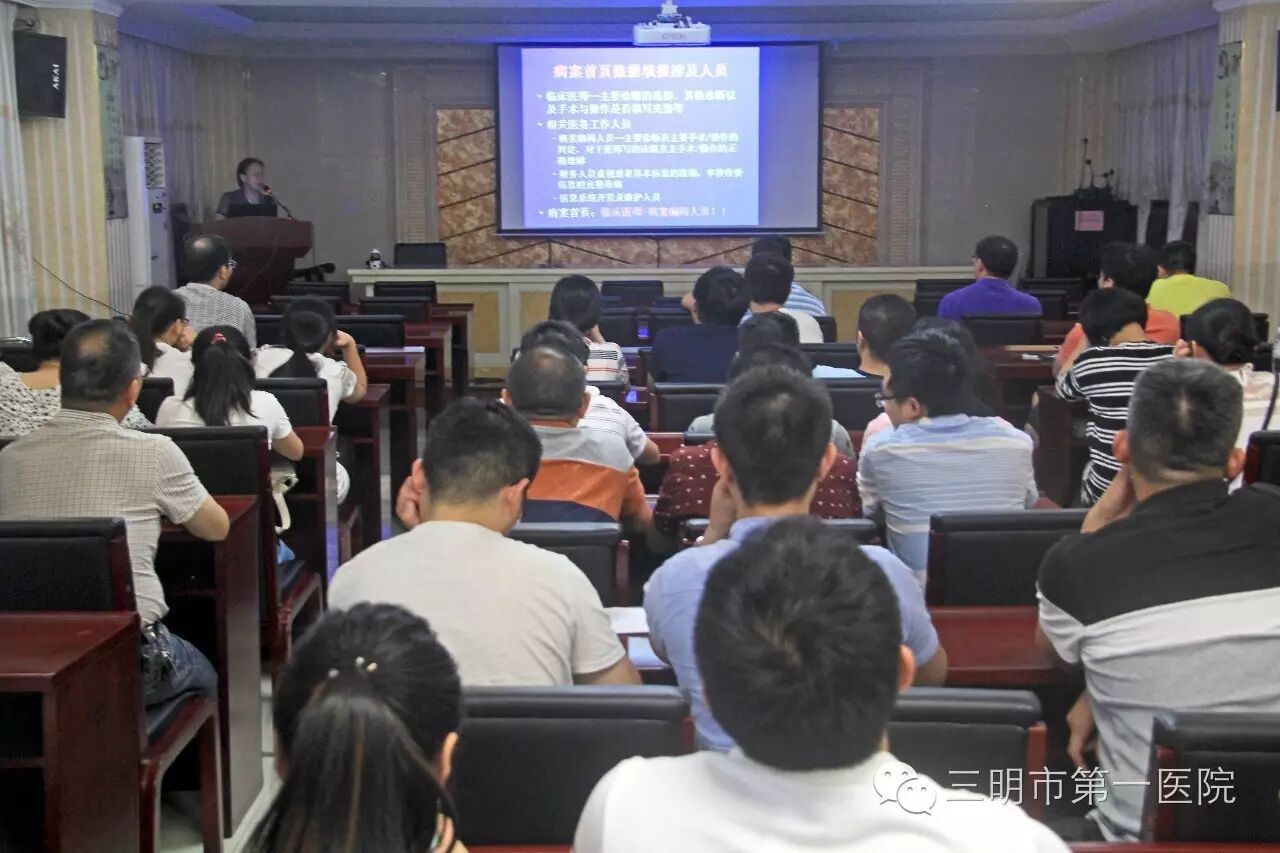 根据市医改领导小组《关于开展住院费用全部按病种付费工作的通知》明医管[2016]27号文件精神,为进一步贯彻落实全病种付费改革工作,我院于7月6日起举办落实DRGs全病种付费系列培训。 第一期培训由质控科、病案科科长李培英、魏宏分别授课,全院436名临床医师参加培训。授课内容分为两部分,首先从DRGs基本要素、分组过程、考核指标和方法进行培训,结合我院实际,运用大量实例和数据使与会人员直观感受到DRGs式管理方法和用于医保付费的科学、实用和对于临床科室发展方向的指导性意义,使临床医生理解DRGs全病种付费的必要性、重要性和可行性。其次,针对影响DRGs付费管理最大的几个因素如何规范、准确、真实、及时借助病案首页录入来达到高质量数据信息上传的目的进行培训,提高病案首页录入规范性和准确率,有效促进DRGs良性发展。